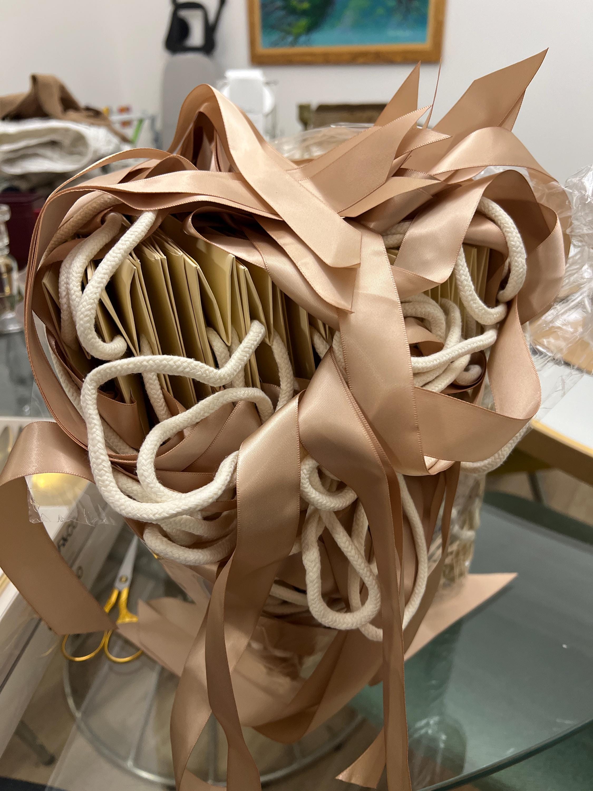 Overall happy with this purchase. The personalised paper bags are beautiful. The customer service was also really great, very responsive and cooperative. The only thing I would have liked is for the straps to be a bit more elegant and thin because the bags are so elegant with the satin ribbons but the straps are a bit thick in my opinion (more like shoelaces). And lastly, I would have liked the packaging to be a bit better, maybe have the ribbons rolled or something as most of them arrived with marked lines because the way they were folded.
